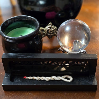 Enhance your incense ritual with this beautiful Wooden Rope Incense Burner, crafted specifically to burn Tibetan rope incense with ease, safety, and style. This burner combines traditional function with modern craftsmanship, making it a perfect addition to any altar, meditation corner, or sacred space.